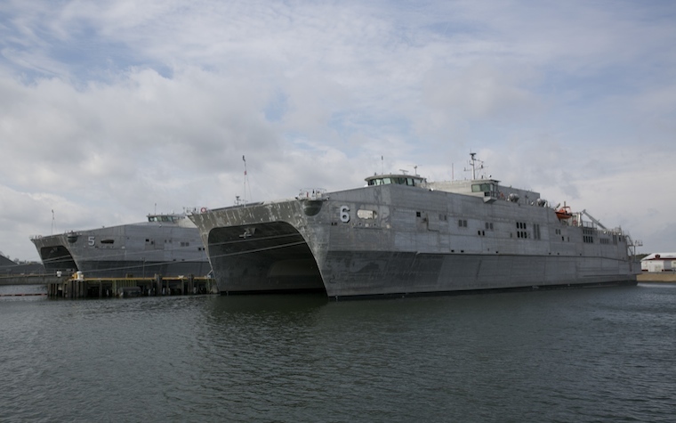 The newest USNS Yuma, ceremonially christened by former Arizona Gov. Janet Napolitano with the traditional breaking of a bottle of champagne on the bow of the ship, is a shallow draft, aluminum catamaran designed to transport 600 short tons of military cargo 1,200 nautical miles.